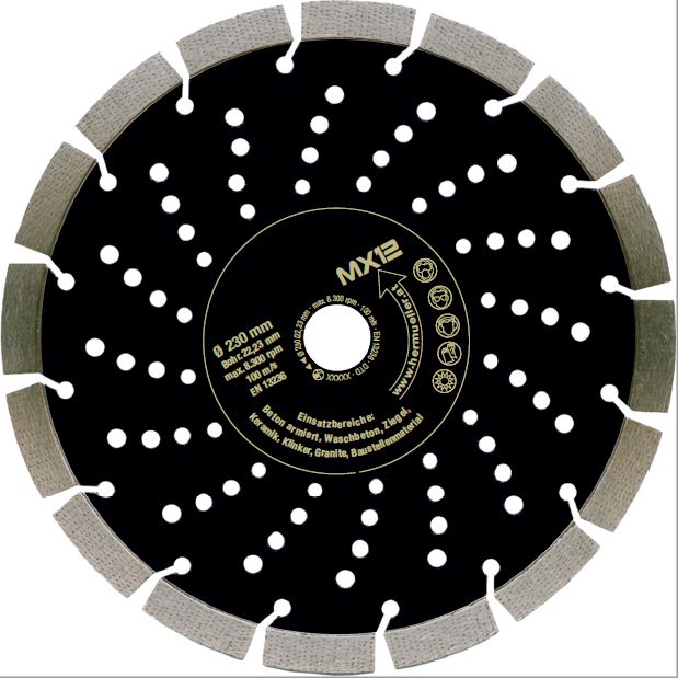 • hochwertige Diamanttrennscheibe mit gleichmäßig angeordneten Diamanten im Segment